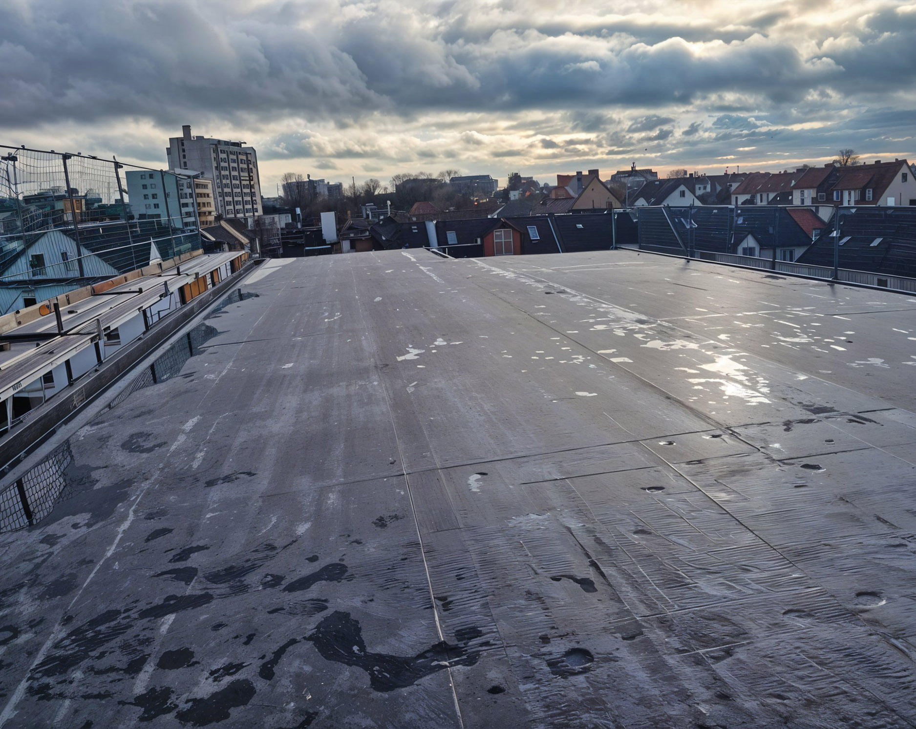 Ein undichtes Flachdach eines Gewerbeobjekts wurde durch unsere moderne Abdichtungstechnik wieder zuverlässig gegen Feuchtigkeit geschützt.